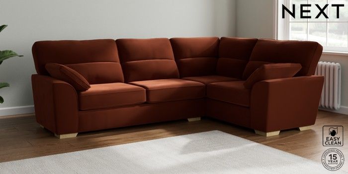 7.2.6 Buy Stamford Highback Large Corner Sofa - Right Hand Plush Velvet Easy Clean Ginger Orange Large Square Angle - Light from the Laura Ashley online shop Click here to use our website with more accessibility support, for example screen readers