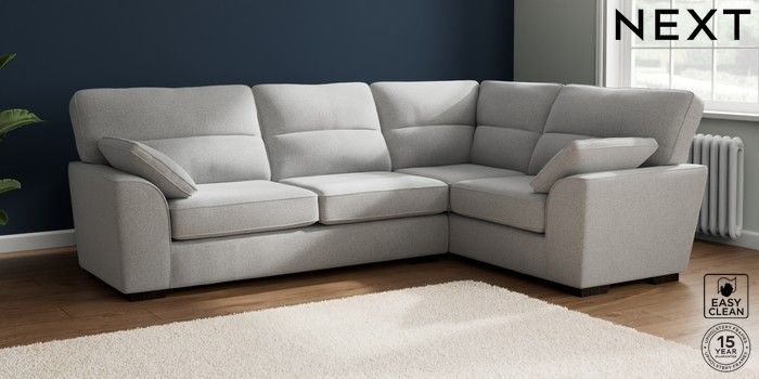 7.2.6 Buy Stamford Highback Large Corner Sofa - Right Hand Tweedy Blend Easy Clean Light Silver Grey Large Square Angle - Dark from the Laura Ashley online shop Click here to use our website with more accessibility support, for example screen readers