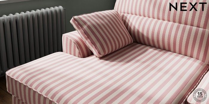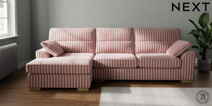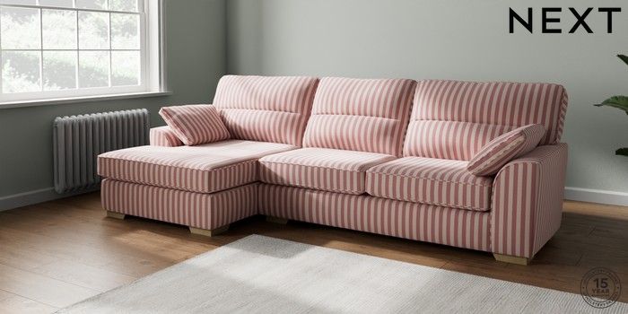 7.3.1 Buy Stamford Highback Large Sofa Chaise - Left Hand Bold Chenille Stripe Dark Pink Large Square Angle - Light from the Laura Ashley online shop Click here to use our website with more accessibility support, for example screen readers