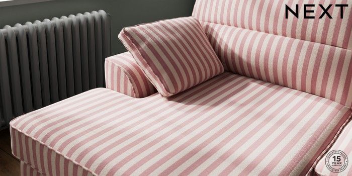 7.3.1 Buy Stamford Highback Large Sofa Chaise - Left Hand Bold Chenille Stripe Dark Pink Large Square Angle - Mid from the Laura Ashley online shop Click here to use our website with more accessibility support, for example screen readers