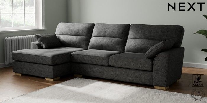 7.2.10 Buy Stamford Highback Large Sofa Chaise - Left Hand Boucle Weave Easy Clean Charcoal Grey Large Square Angle - Light from the Laura Ashley online shop Click here to use our website with more accessibility support, for example screen readers