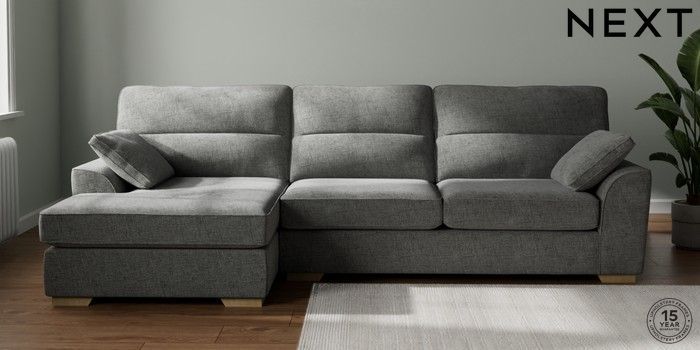 7.2.10 Buy Stamford Highback Large Sofa Chaise - Left Hand Chunky Chenille Dark Grey Large Square Angle - Light from the Laura Ashley online shop Click here to use our website with more accessibility support, for example screen readers