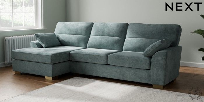 7.2.6 Buy Stamford Highback Large Sofa Chaise - Left Hand Chunky Chenille Light Teal Green Large Square Angle - Brushed Brass from the Laura Ashley online shop Click here to use our website with more accessibility support, for example screen readers