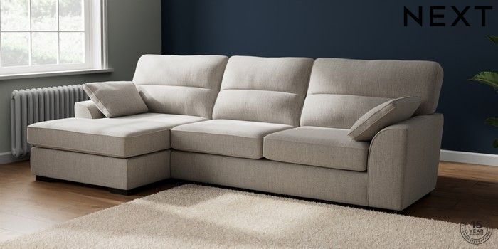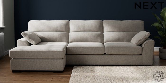 7.2.10 Buy Stamford Highback Large Sofa Chaise - Left Hand Chunky Weave Dove Grey Large Square Angle - Dark from the Laura Ashley online shop Click here to use our website with more accessibility support, for example screen readers
