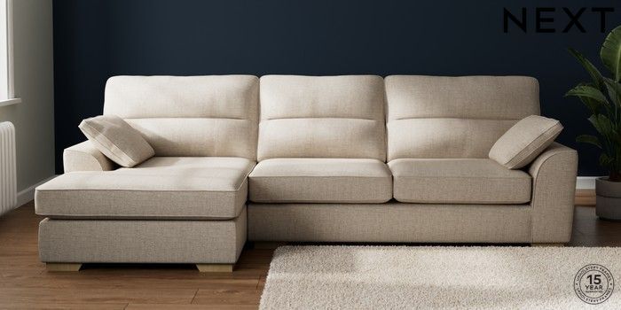 7.2.10 Buy Stamford Highback Large Sofa Chaise - Left Hand Chunky Weave Mid Natural Large Square Angle - Light from the Laura Ashley online shop Click here to use our website with more accessibility support, for example screen readers