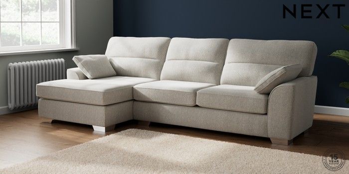 7.2.6 Buy Stamford Highback Large Sofa Chaise - Left Hand Multi Weave Light Blue Large Square Angle - Chrome Metal from the Laura Ashley online shop Click here to use our website with more accessibility support, for example screen readers