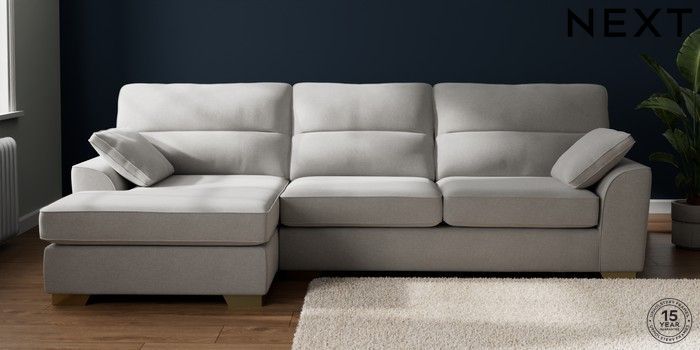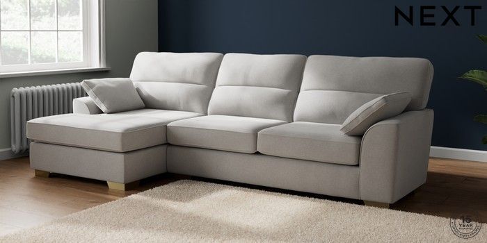 7.2.6 Buy Stamford Highback Large Sofa Chaise - Left Hand Natural Mix Light Grey Large Square Angle - Brushed Brass from the Laura Ashley online shop Click here to use our website with more accessibility support, for example screen readers