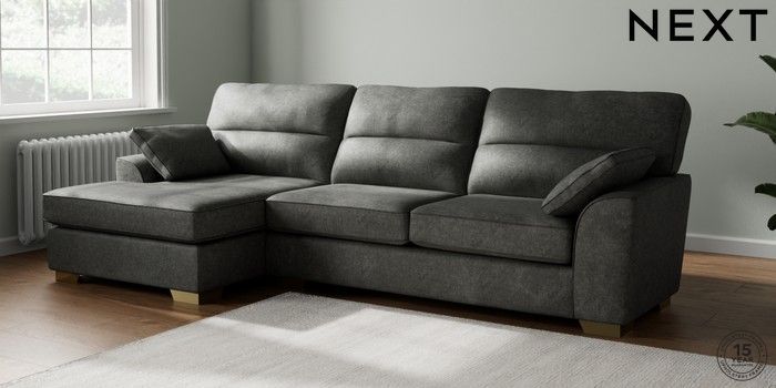 7.2.6 Buy Stamford Highback Large Sofa Chaise - Left Hand Plush Chenille Dark Grey Large Square Angle - Brushed Brass from the Laura Ashley online shop Click here to use our website with more accessibility support, for example screen readers
