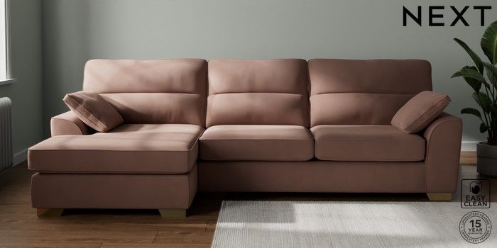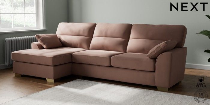 7.2.6 Buy Stamford Highback Large Sofa Chaise - Left Hand Plush Velvet Easy Clean Mid Natural Large Square Angle - Brushed Brass from the Laura Ashley online shop Click here to use our website with more accessibility support, for example screen readers