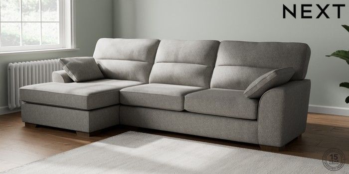 6.12.1 Buy Stamford Highback Large Sofa Chaise - Left Hand Tweedy Chenille Mid Grey Large Square Angle - Mid from the Laura Ashley online shop Click here to use our website with more accessibility support, for example screen readers
