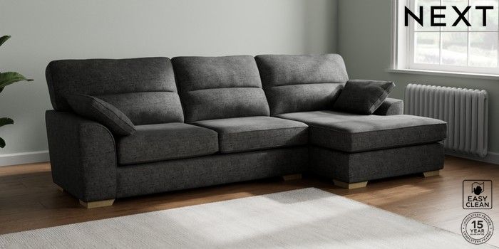 7.2.10 Buy Stamford Highback Large Sofa Chaise - Right Hand Boucle Weave Easy Clean Charcoal Grey Large Square Angle - Light from the Laura Ashley online shop Click here to use our website with more accessibility support, for example screen readers
