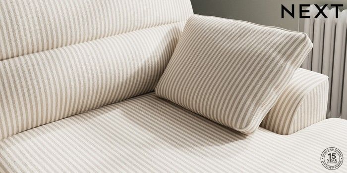 7.3.1 Buy Stamford Highback Large Sofa Chaise - Right Hand Chenille Stripe Natural Large Square Angle - Mid from the Laura Ashley online shop Click here to use our website with more accessibility support, for example screen readers