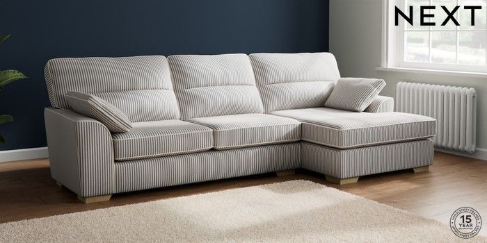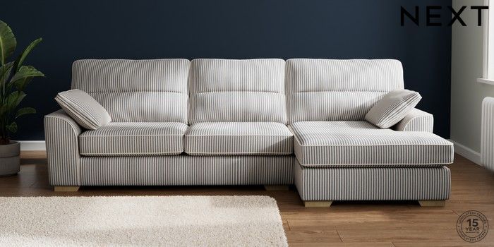 7.3.1 Buy Stamford Highback Large Sofa Chaise - Right Hand Chenille Stripe Slate Blue Large Square Angle - Light from the Laura Ashley online shop Click here to use our website with more accessibility support, for example screen readers