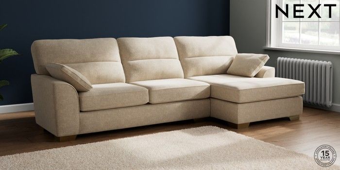 7.2.6 Buy Stamford Highback Large Sofa Chaise - Right Hand Chunky Weave Cream Large Square Angle - Brushed Brass from the Laura Ashley online shop Click here to use our website with more accessibility support, for example screen readers