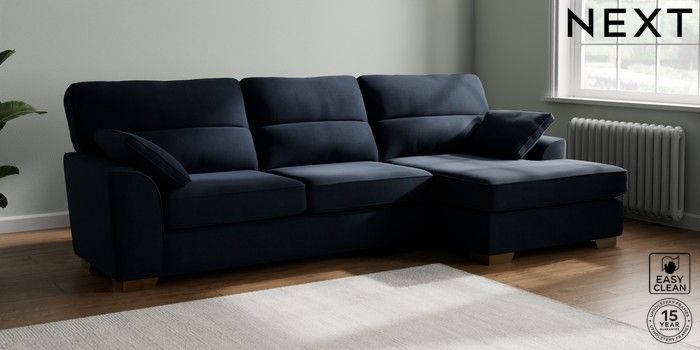 7.2.6 Buy Stamford Highback Large Sofa Chaise - Right Hand Fine Chenille Easy Clean Dark Navy Blue Large Square Angle - Brushed Brass from the Laura Ashley online shop Click here to use our website with more accessibility support, for example screen readers