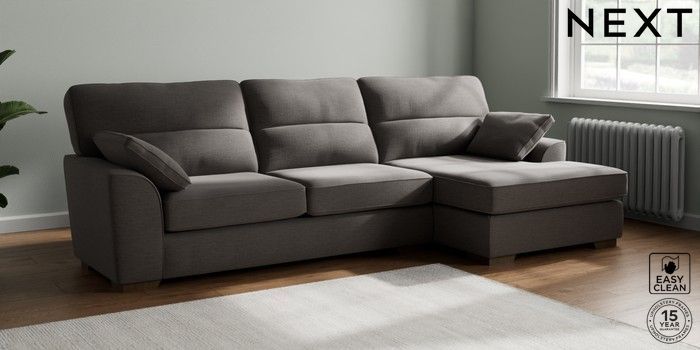 7.2.6 Buy Stamford Highback Large Sofa Chaise - Right Hand Fine Chenille Easy Clean Dark Smoke Grey Large Square Angle - Mid from the Laura Ashley online shop Click here to use our website with more accessibility support, for example screen readers