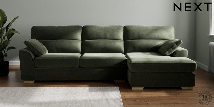 7.2.6 Buy Stamford Highback Large Sofa Chaise - Right Hand Luxe Chenille Mid Green Large Square Angle - Light from the Laura Ashley online shop Click here to use our website with more accessibility support, for example screen readers