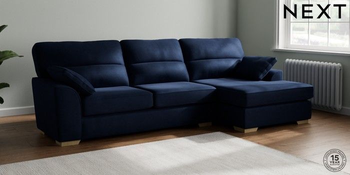 7.2.6 Buy Stamford Highback Large Sofa Chaise - Right Hand Luxe Chenille Navy Blue Large Square Angle - Light from the Laura Ashley online shop Click here to use our website with more accessibility support, for example screen readers