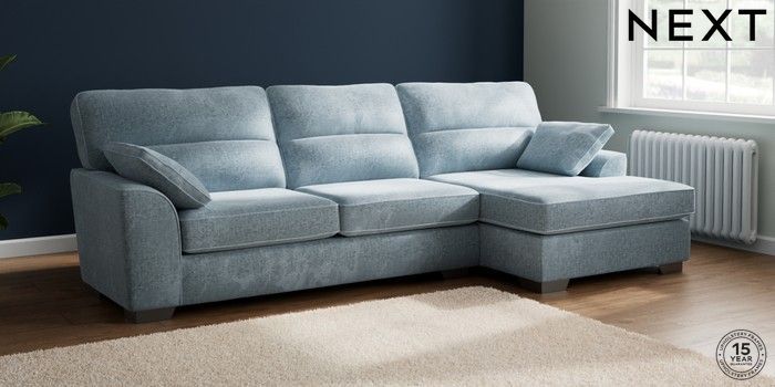 7.2.6 Buy Stamford Highback Large Sofa Chaise - Right Hand Plush Chenille Light Blue Large Square Angle - Gunmetal from the Laura Ashley online shop Click here to use our website with more accessibility support, for example screen readers