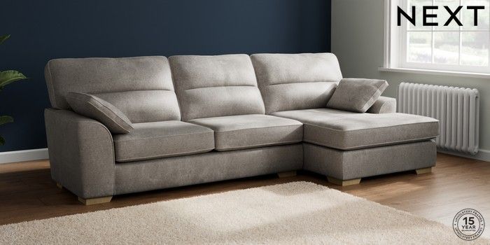 6.12.1 Buy Stamford Highback Large Sofa Chaise - Right Hand Plush Chenille Light Grey Large Square Angle - Light from the Laura Ashley online shop Click here to use our website with more accessibility support, for example screen readers
