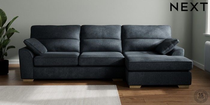 7.2.10 Buy Stamford Highback Large Sofa Chaise - Right Hand Plush Chenille Slate Blue Large Square Angle - Light from the Laura Ashley online shop Click here to use our website with more accessibility support, for example screen readers