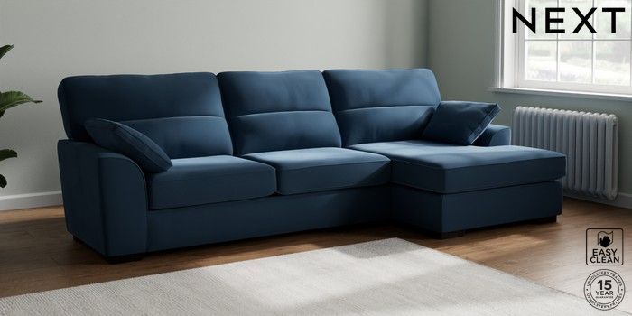 6.12.1 Buy Stamford Highback Large Sofa Chaise - Right Hand Plush Velvet Easy Clean Airforce Blue Large Square Angle - Dark from the Laura Ashley online shop Click here to use our website with more accessibility support, for example screen readers