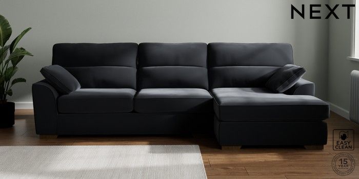 7.2.10 Buy Stamford Highback Large Sofa Chaise - Right Hand Plush Velvet Easy Clean Charcoal Grey Large Square Angle - Mid from the Laura Ashley online shop Click here to use our website with more accessibility support, for example screen readers