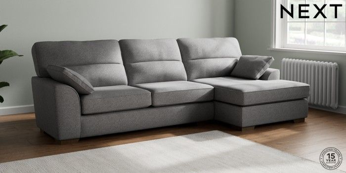 7.2.6 Buy Stamford Highback Large Sofa Chaise - Right Hand Studio Chenille Mid Grey Large Square Angle - Mid from the Laura Ashley online shop Click here to use our website with more accessibility support, for example screen readers