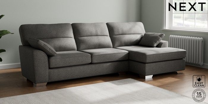 7.2.6 Buy Stamford Highback Large Sofa Chaise - Right Hand Tweedy Blend Easy Clean Dark Grey Large Square Angle - Chrome Metal from the Laura Ashley online shop Click here to use our website with more accessibility support, for example screen readers