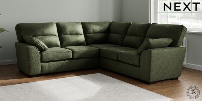 7.2.6 Buy Stamford Highback Medium Corner Sofa - Universal Boucle Chenille Dark Moss Green Large Square Angle - Dark from the Laura Ashley online shop Click here to use our website with more accessibility support, for example screen readers