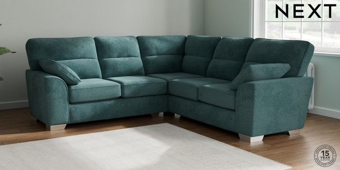 7.2.6 Buy Stamford Highback Medium Corner Sofa - Universal Chunky Chenille Mid Teal Green Large Square Angle - Chrome Metal from the Laura Ashley online shop Click here to use our website with more accessibility support, for example screen readers