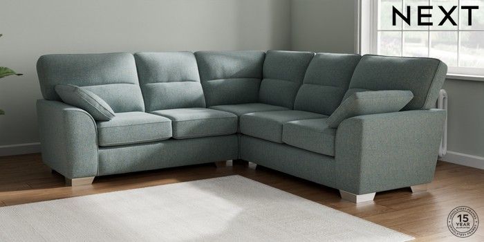 7.2.6 Buy Stamford Highback Medium Corner Sofa - Universal Chunky Marl Mid Blue Large Square Angle - Chrome Metal from the Laura Ashley online shop Click here to use our website with more accessibility support, for example screen readers