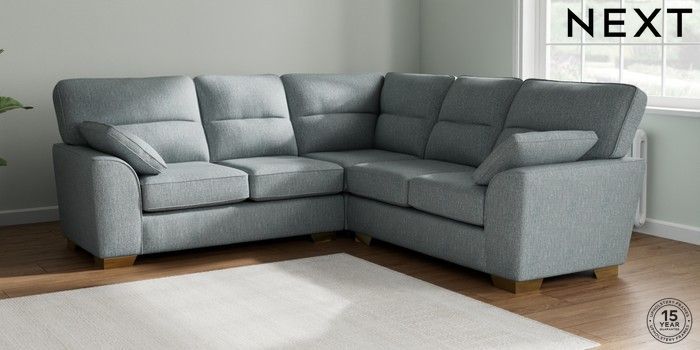 7.2.6 Buy Stamford Highback Medium Corner Sofa - Universal Chunky Weave Mid Blue Large Square Angle - Brushed Brass from the Laura Ashley online shop Click here to use our website with more accessibility support, for example screen readers