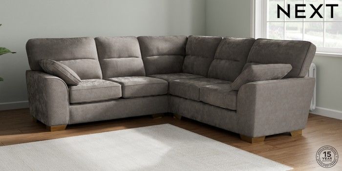 7.2.6 Buy Stamford Highback Medium Corner Sofa - Universal Distressed Velour French Grey Large Square Angle - Brushed Brass from the Laura Ashley online shop Click here to use our website with more accessibility support, for example screen readers