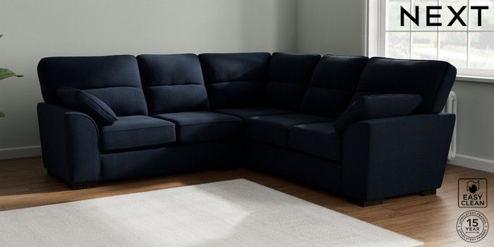 7.2.6 Buy Stamford Highback Medium Corner Sofa - Universal Fine Chenille Easy Clean Dark Navy Blue Large Square Angle - Dark from the Laura Ashley online shop Click here to use our website with more accessibility support, for example screen readers