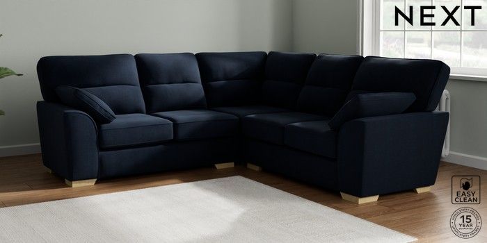 7.2.6 Buy Stamford Highback Medium Corner Sofa - Universal Fine Chenille Easy Clean Dark Navy Blue Large Square Angle - Light from the Laura Ashley online shop Click here to use our website with more accessibility support, for example screen readers