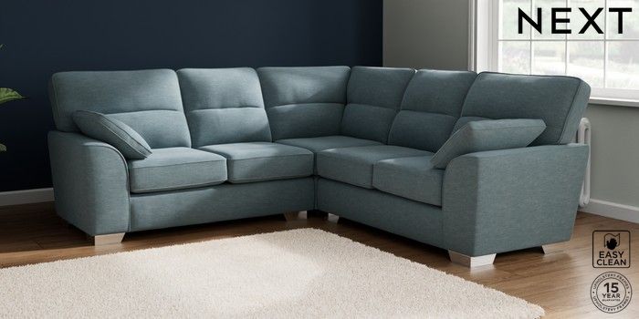 7.2.6 Buy Stamford Highback Medium Corner Sofa - Universal Fine Chenille Easy Clean Mid Blue Large Square Angle - Chrome Metal from the Laura Ashley online shop Click here to use our website with more accessibility support, for example screen readers