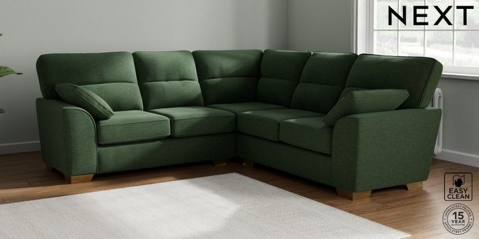 7.2.6 Buy Stamford Highback Medium Corner Sofa - Universal Fine Chenille Easy Clean Mid Khaki Green Large Square Angle - Brushed Brass from the Laura Ashley online shop Click here to use our website with more accessibility support, for example screen readers
