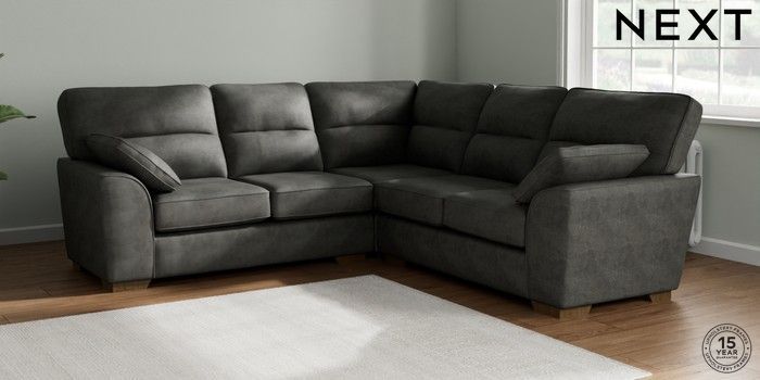 7.2.6 Buy Stamford Highback Medium Corner Sofa - Universal Monza Faux Leather Easy Clean Dark Grey Large Square Angle - Mid from the Laura Ashley online shop Click here to use our website with more accessibility support, for example screen readers