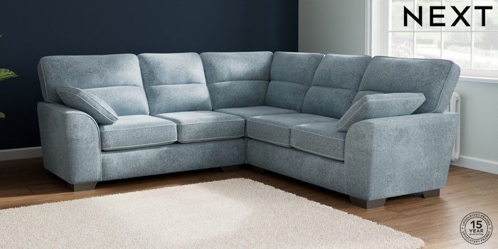 7.2.6 Buy Stamford Highback Medium Corner Sofa - Universal Plush Chenille Light Blue Large Square Angle - Gunmetal from the Laura Ashley online shop Click here to use our website with more accessibility support, for example screen readers