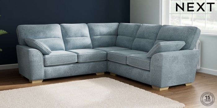 7.2.6 Buy Stamford Highback Medium Corner Sofa - Universal Plush Chenille Light Blue Large Square Angle - Light from the Laura Ashley online shop Click here to use our website with more accessibility support, for example screen readers