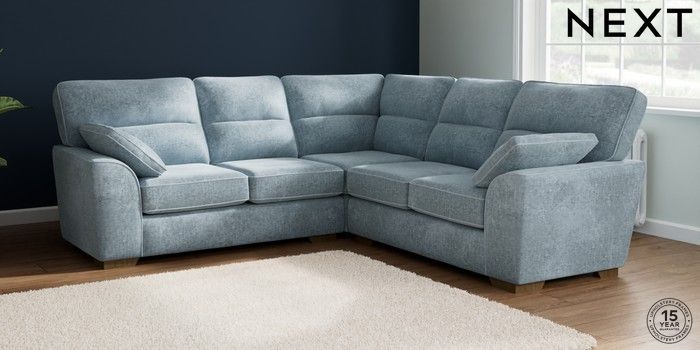 7.2.6 Buy Stamford Highback Medium Corner Sofa - Universal Plush Chenille Light Blue Large Square Angle - Mid from the Laura Ashley online shop Click here to use our website with more accessibility support, for example screen readers