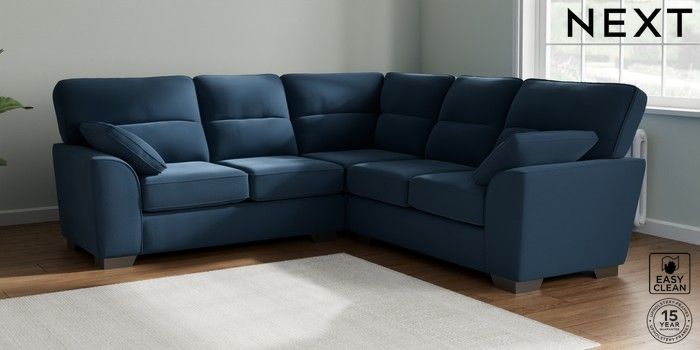 7.2.6 Buy Stamford Highback Medium Corner Sofa - Universal Plush Velvet Easy Clean Airforce Blue Large Square Angle - Gunmetal from the Laura Ashley online shop Click here to use our website with more accessibility support, for example screen readers