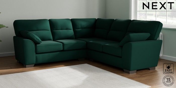 7.2.6 Buy Stamford Highback Medium Corner Sofa - Universal Plush Velvet Easy Clean Bottle Green Large Square Angle - Gunmetal from the Laura Ashley online shop Click here to use our website with more accessibility support, for example screen readers