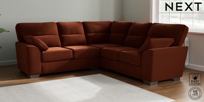6.12.1 Buy Stamford Highback Medium Corner Sofa - Universal Plush Velvet Easy Clean Ginger Orange Large Square Angle - Gunmetal from the Laura Ashley online shop Click here to use our website with more accessibility support, for example screen readers