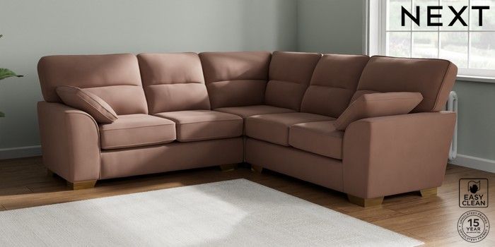 7.2.6 Buy Stamford Highback Medium Corner Sofa - Universal Plush Velvet Easy Clean Mid Natural Large Square Angle - Brushed Brass from the Laura Ashley online shop Click here to use our website with more accessibility support, for example screen readers
