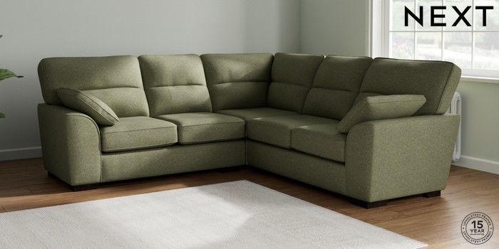 7.2.6 Buy Stamford Highback Medium Corner Sofa - Universal Tweedy Chenille Mid Moss Green Large Square Angle - Dark from the Laura Ashley online shop Click here to use our website with more accessibility support, for example screen readers