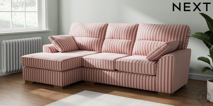 7.3.1 Buy Stamford Highback Medium Sofa Chaise - Left Hand Bold Chenille Stripe Dark Pink Large Square Angle - Mid from the Laura Ashley online shop Click here to use our website with more accessibility support, for example screen readers