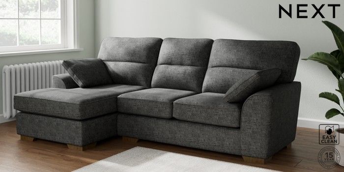7.2.10 Buy Stamford Highback Medium Sofa Chaise - Left Hand Boucle Weave Easy Clean Charcoal Grey Large Square Angle - Mid from the Laura Ashley online shop Click here to use our website with more accessibility support, for example screen readers
