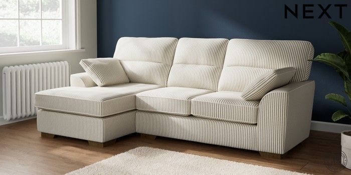 7.3.1 Buy Stamford Highback Medium Sofa Chaise - Left Hand Chenille Stripe Moss Green Large Square Angle - Mid from the Laura Ashley online shop Click here to use our website with more accessibility support, for example screen readers